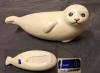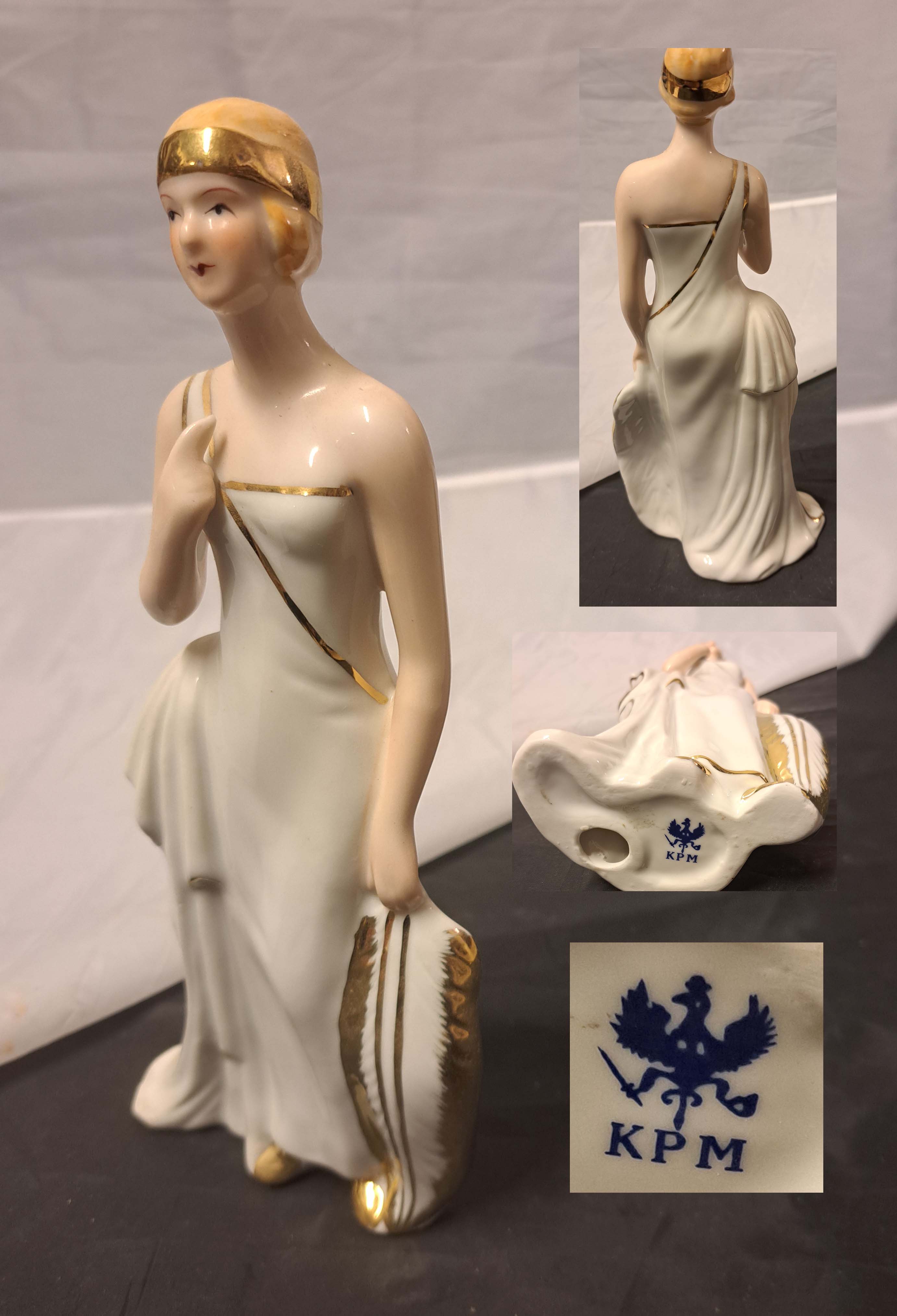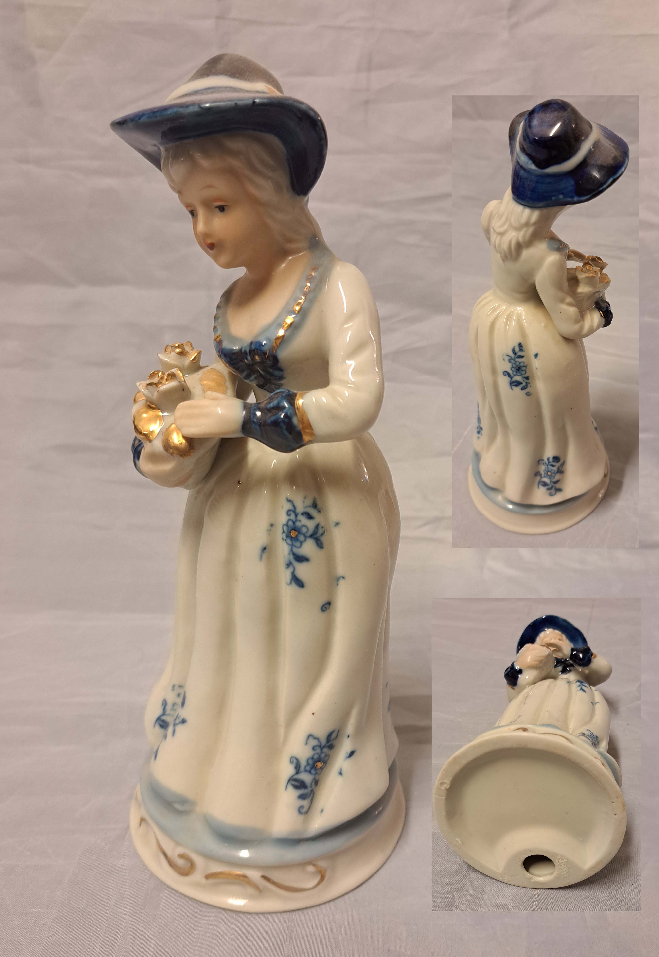 Korkeus 15 cm. Pohjassa uppoleimat. Tassussa vika.