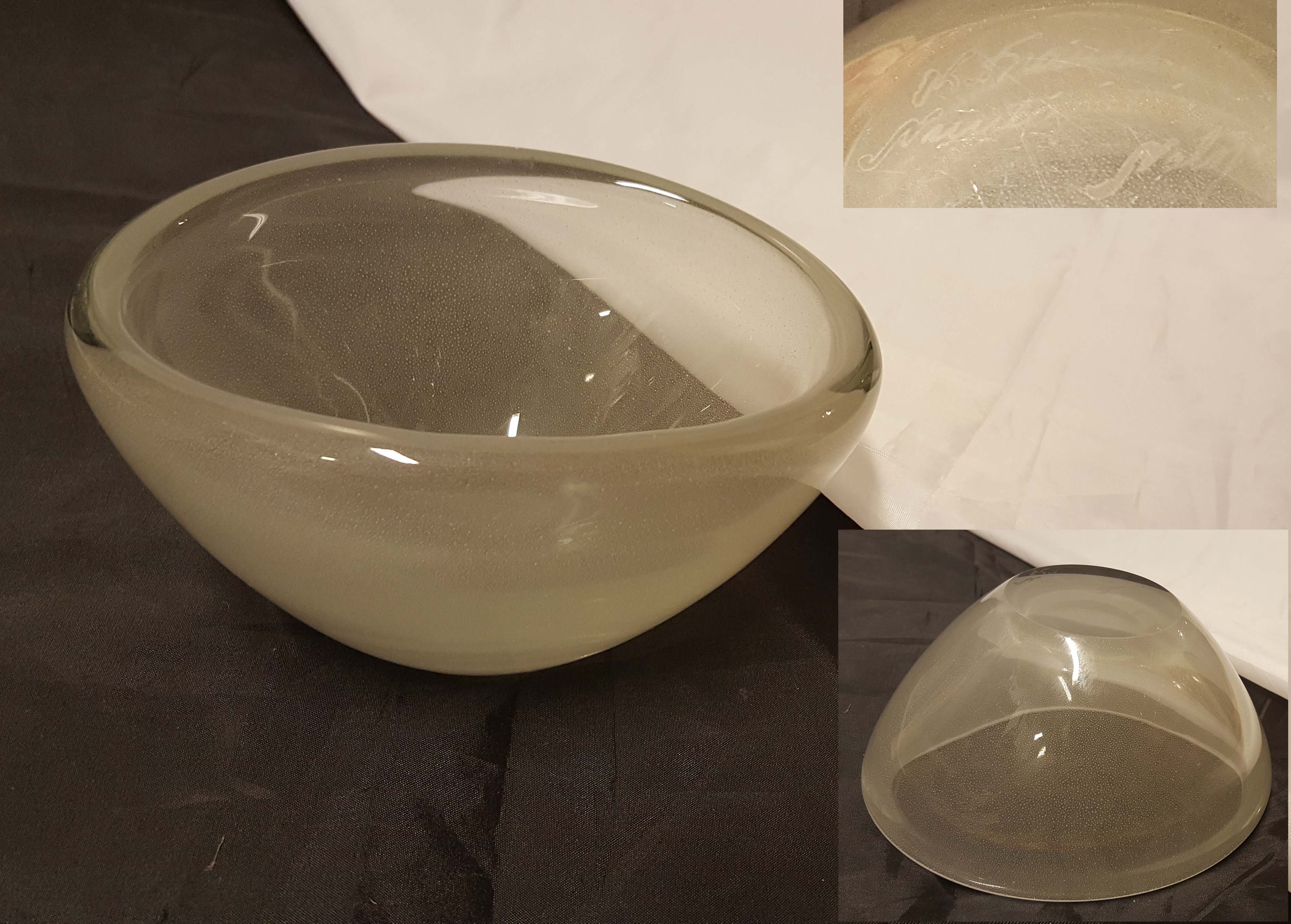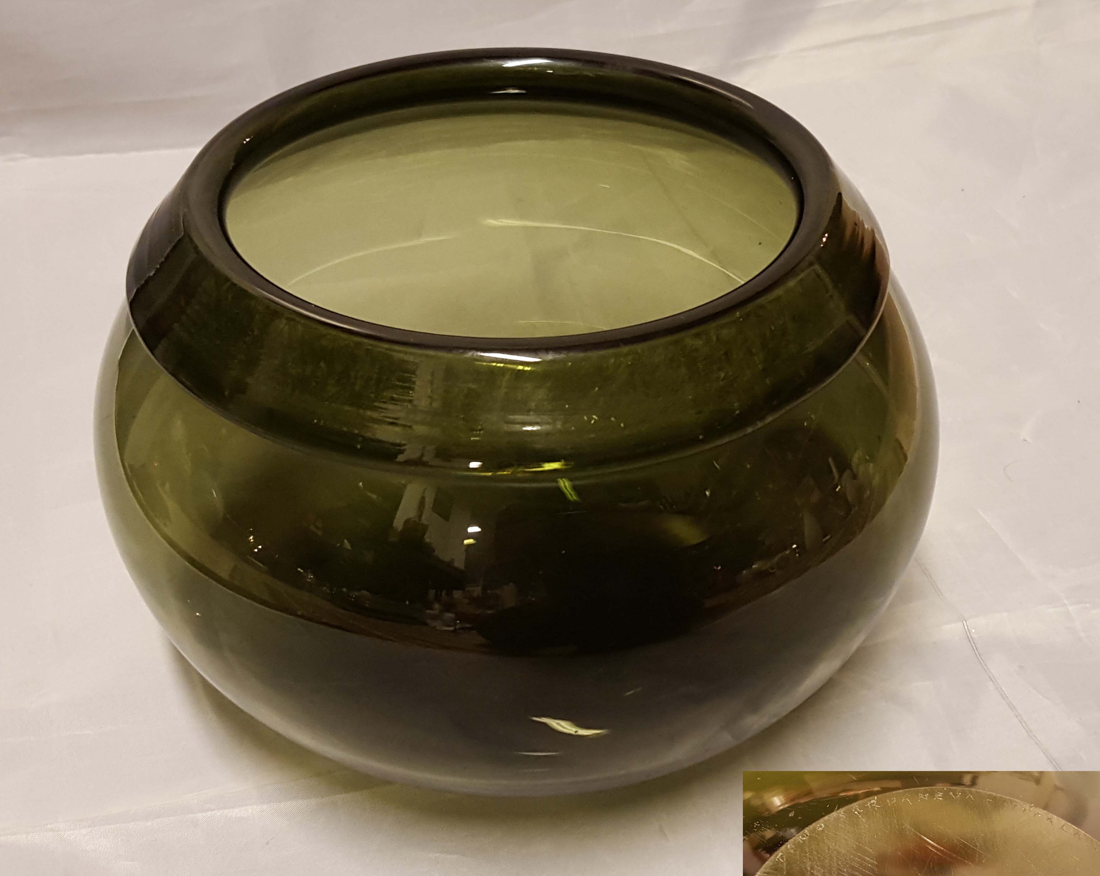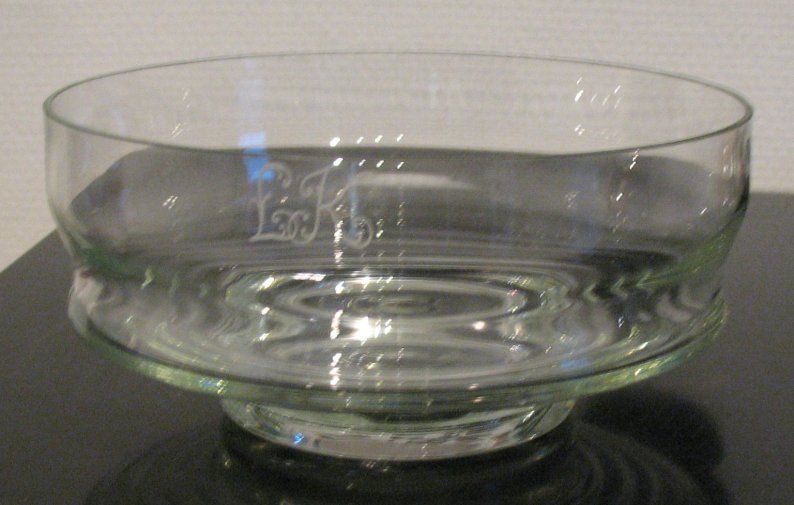 Riihimäki, pari pientä ilmakuplaa - ehjä, korkeus 8,5 cm - halkaisija 18 cm - monogrammi LK