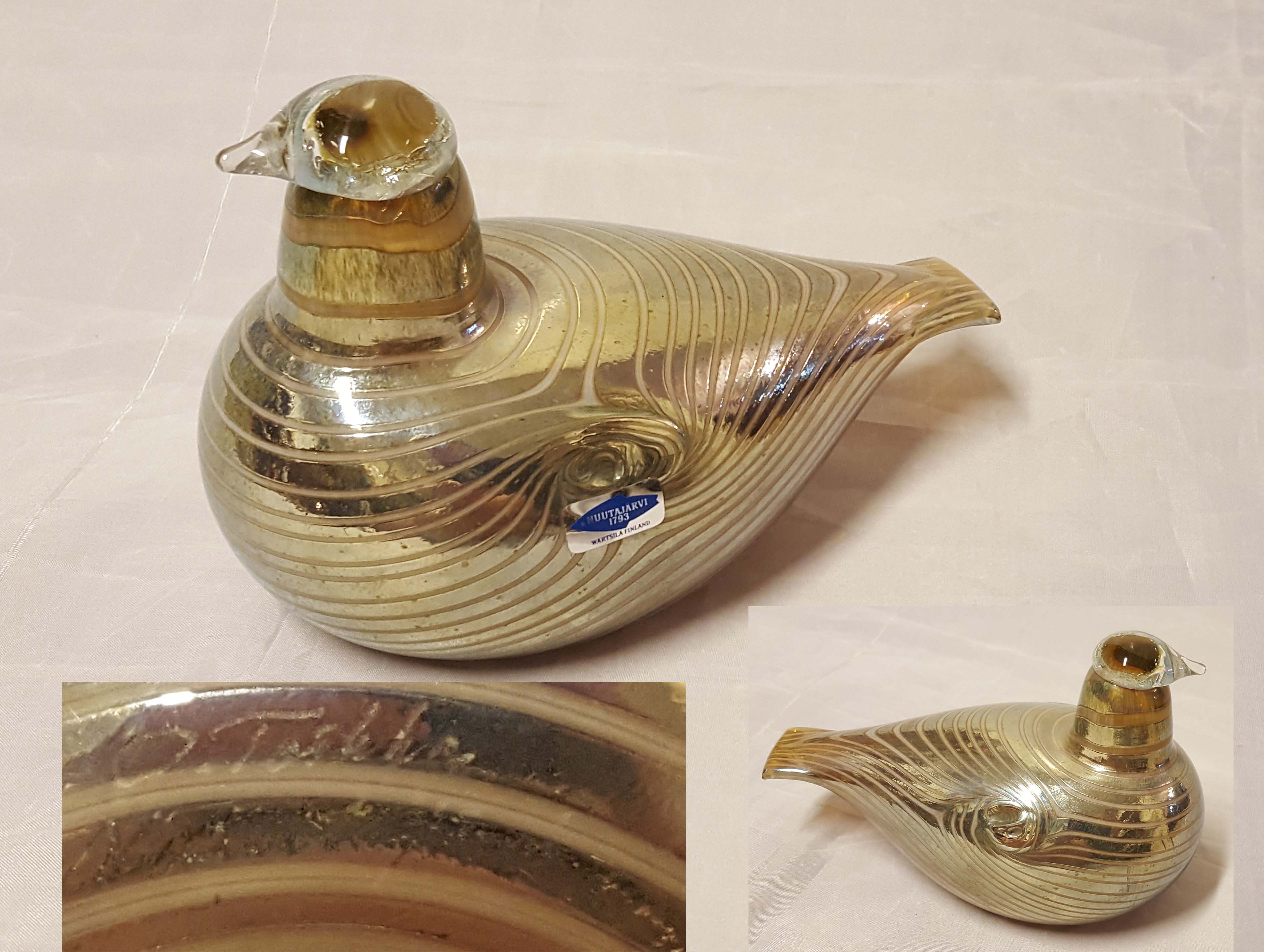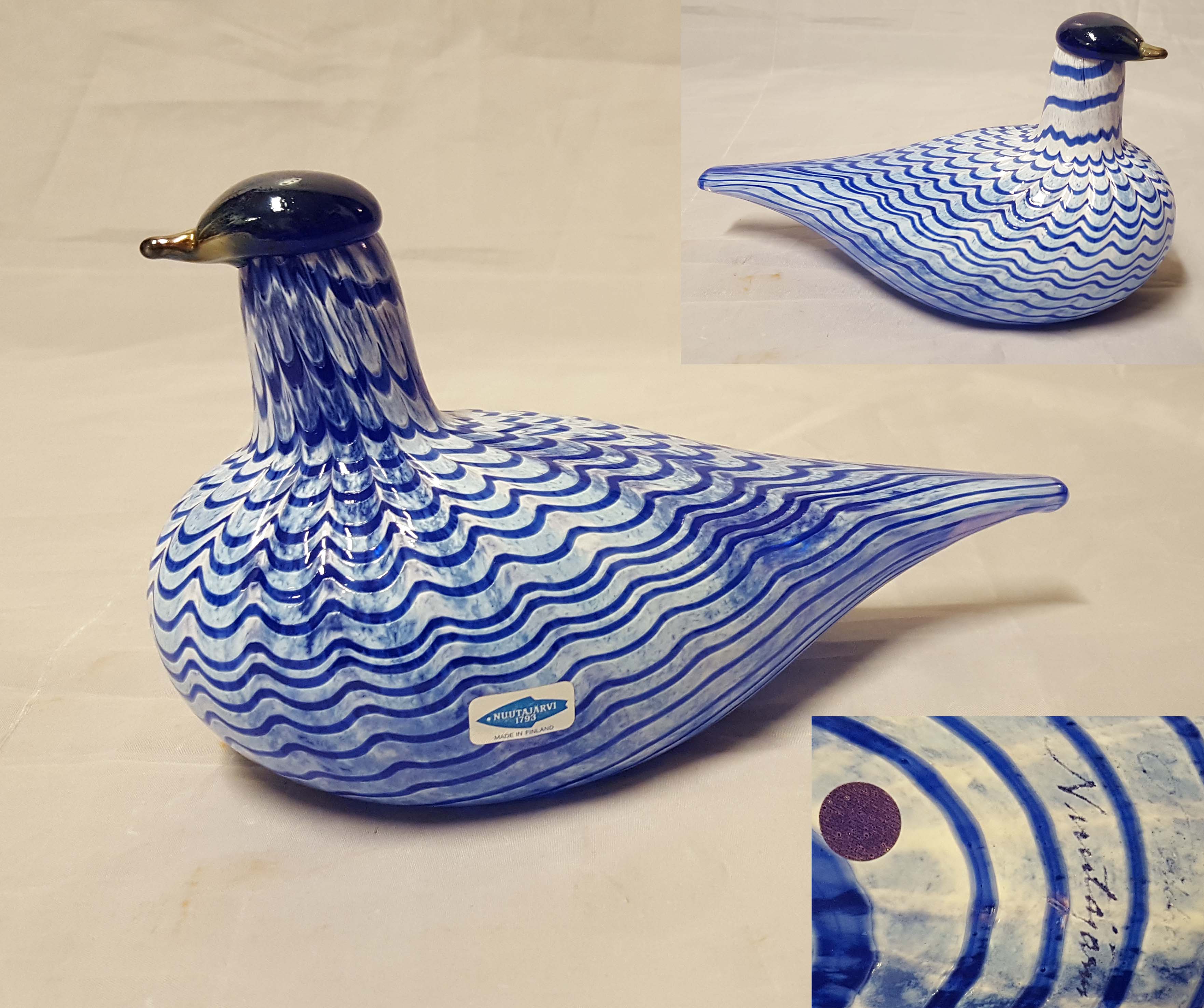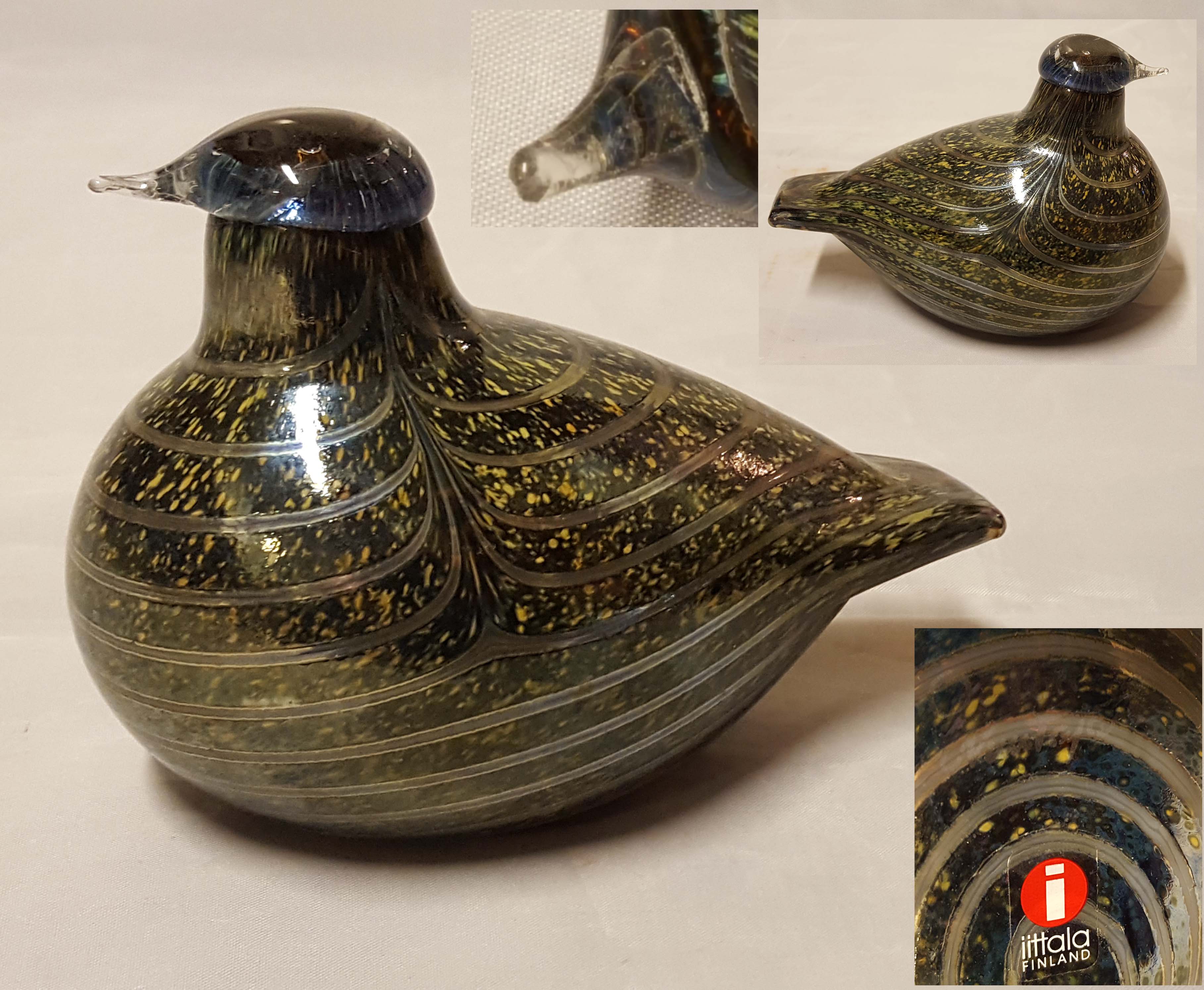 Pituus 12 cm, signeerattu. Pientä epäselvyyttä nokan alaosan sauman suhteen.