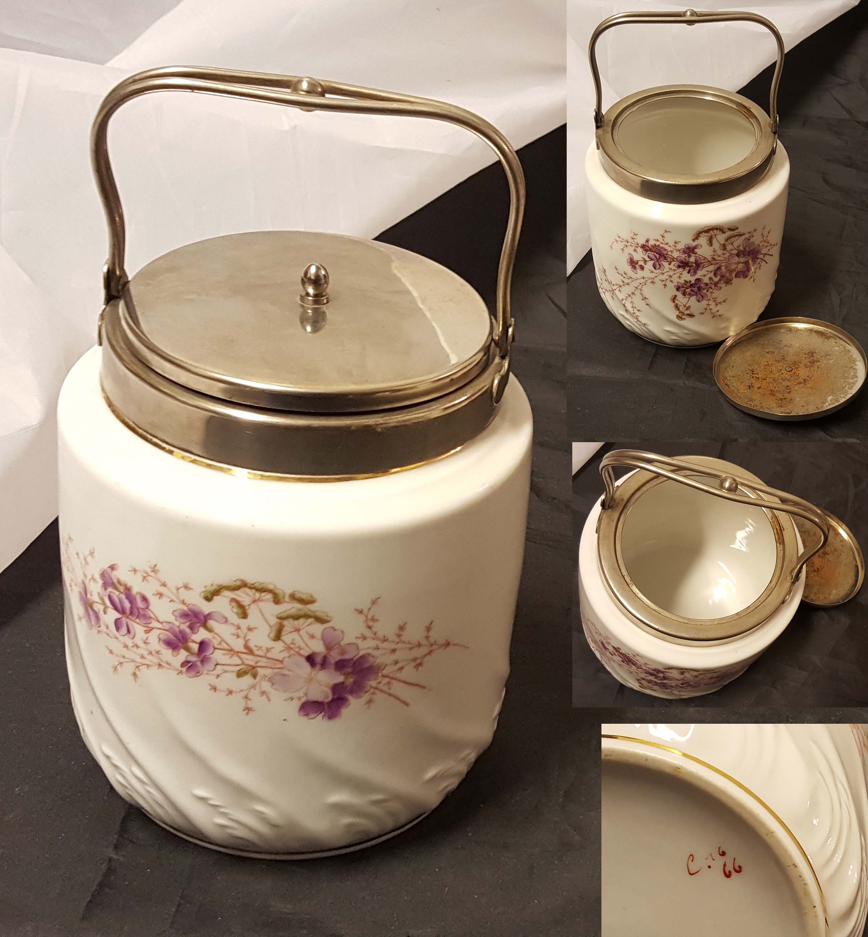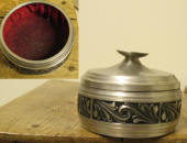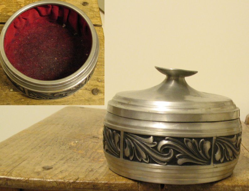 Pohjassa H norsk tinn pewter - halkaisija 13 cm - kannessa vähän kolhuja - sisusta vaatii imurointia
