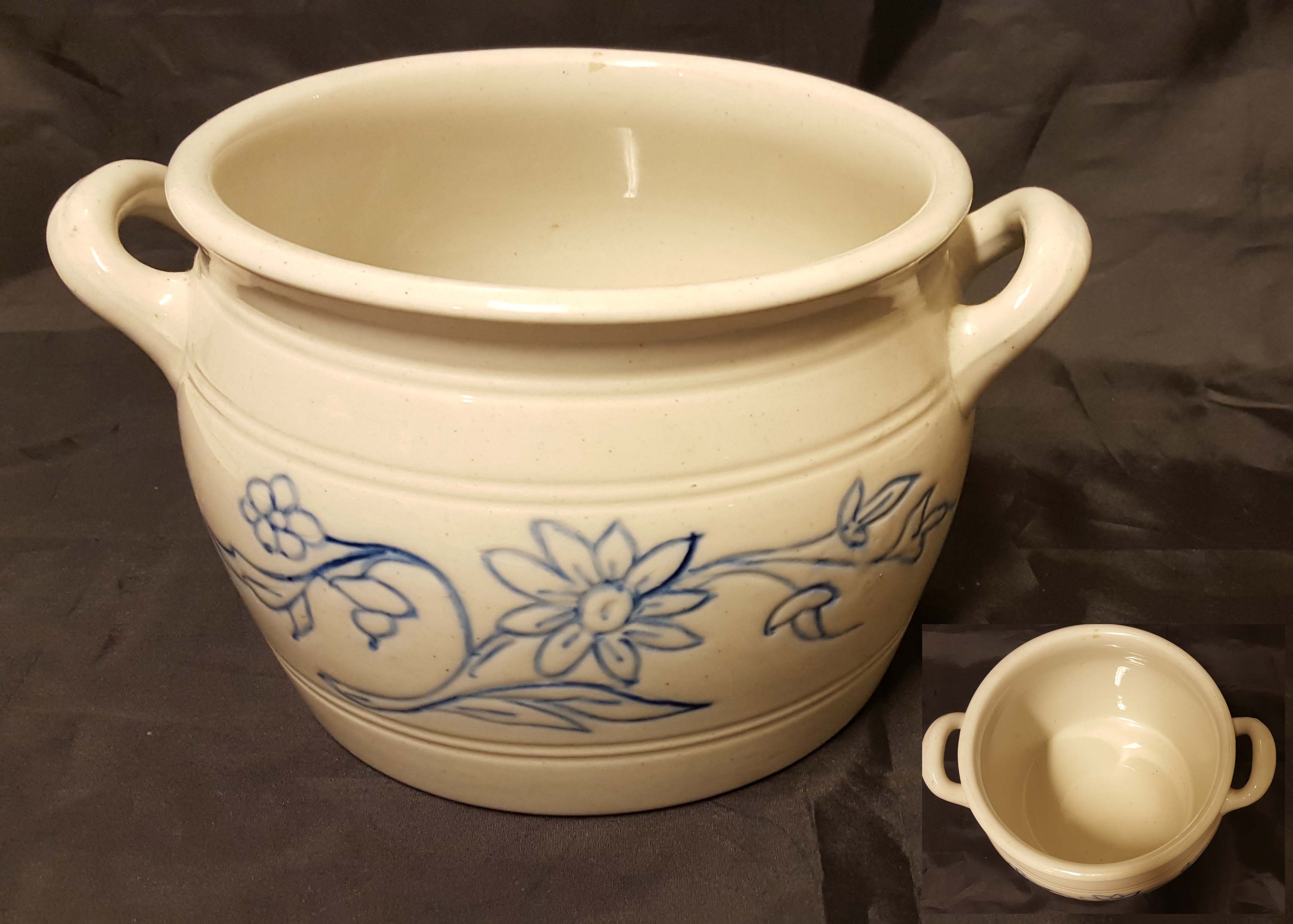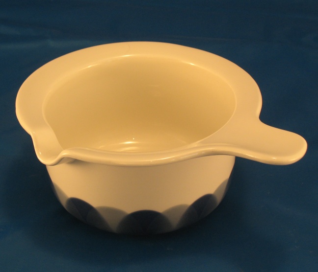 Halkaisija 27 cm, rotanhäntäleima - pieni lasitteeton täplä kahvassa, käyttökulumaa