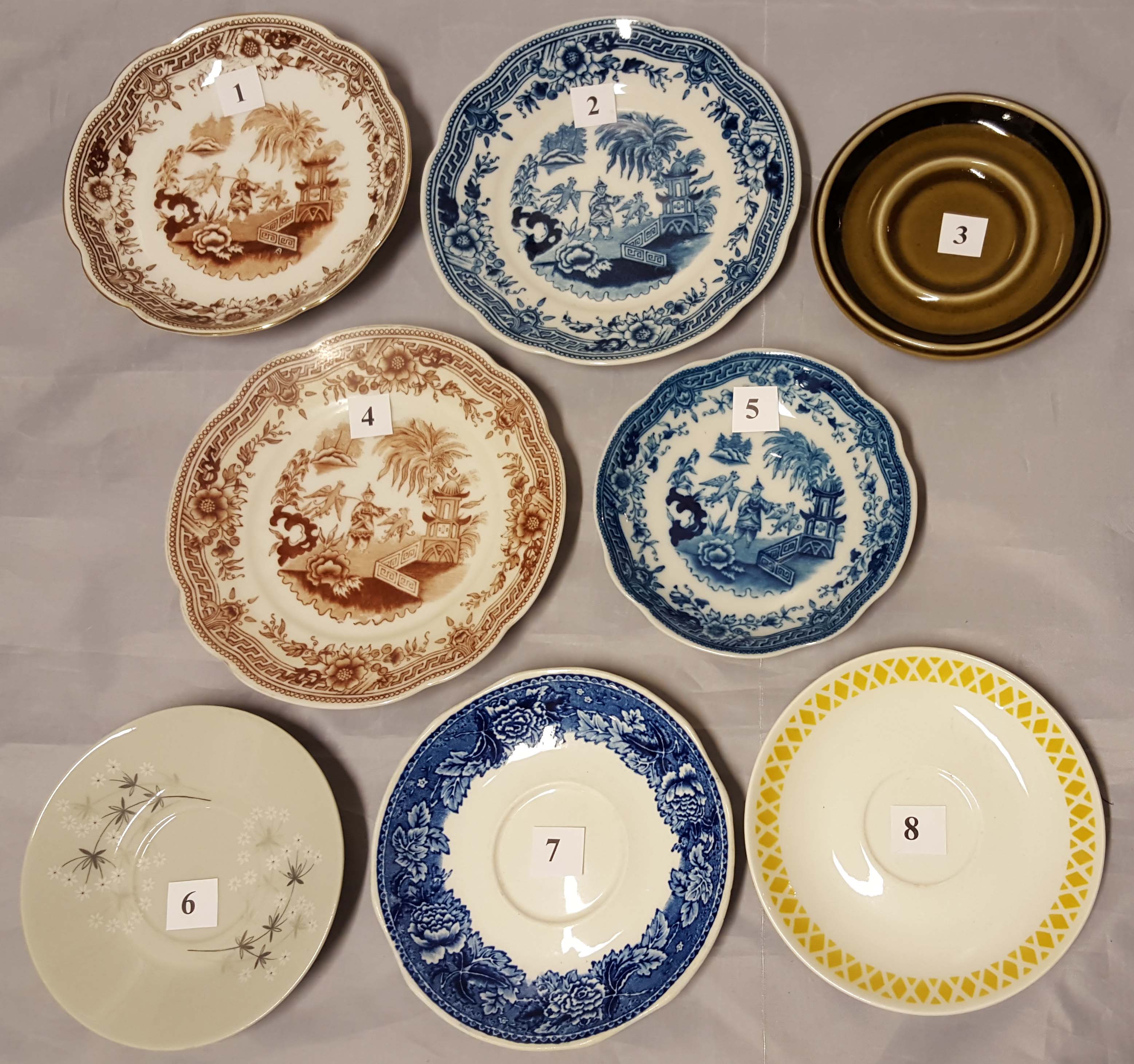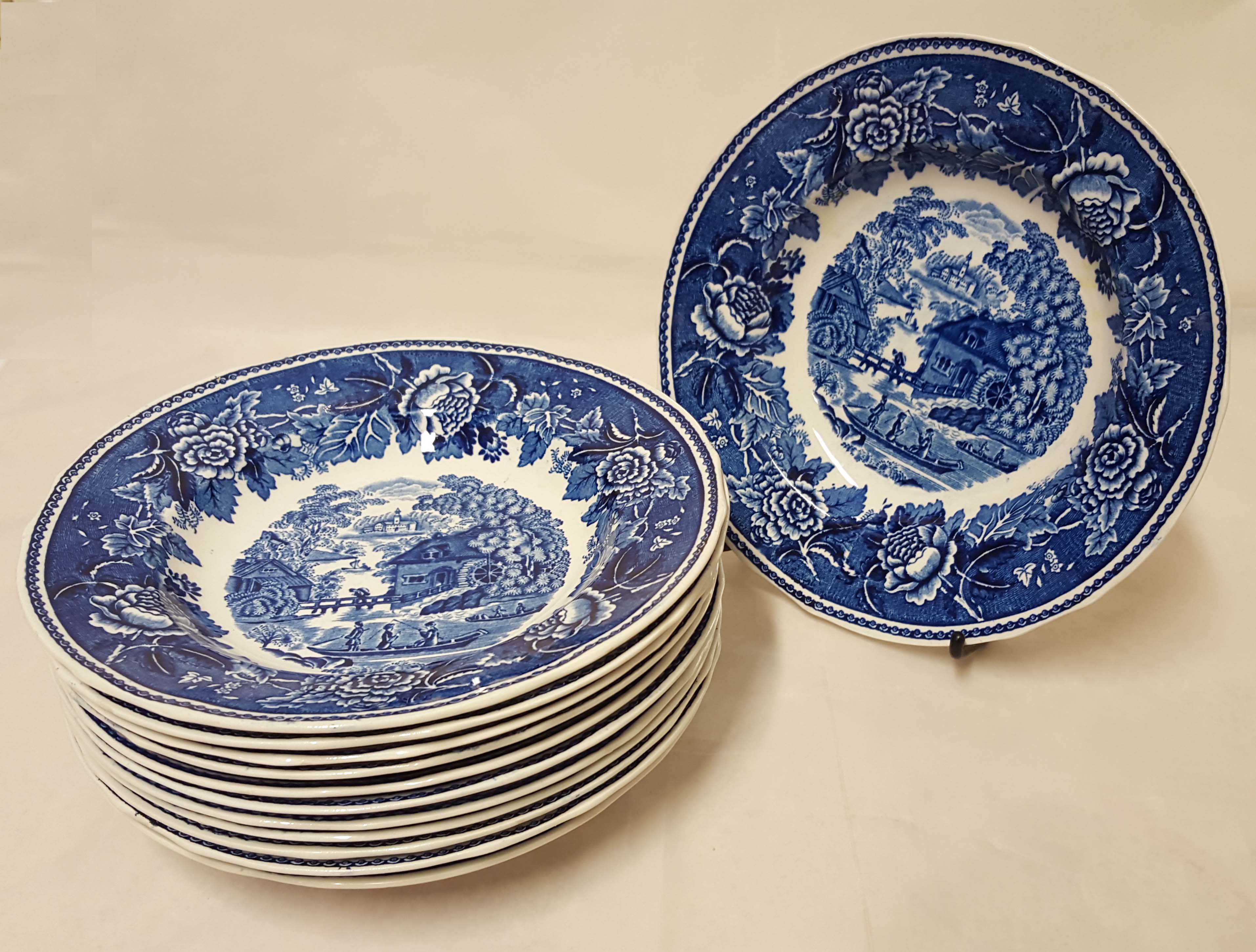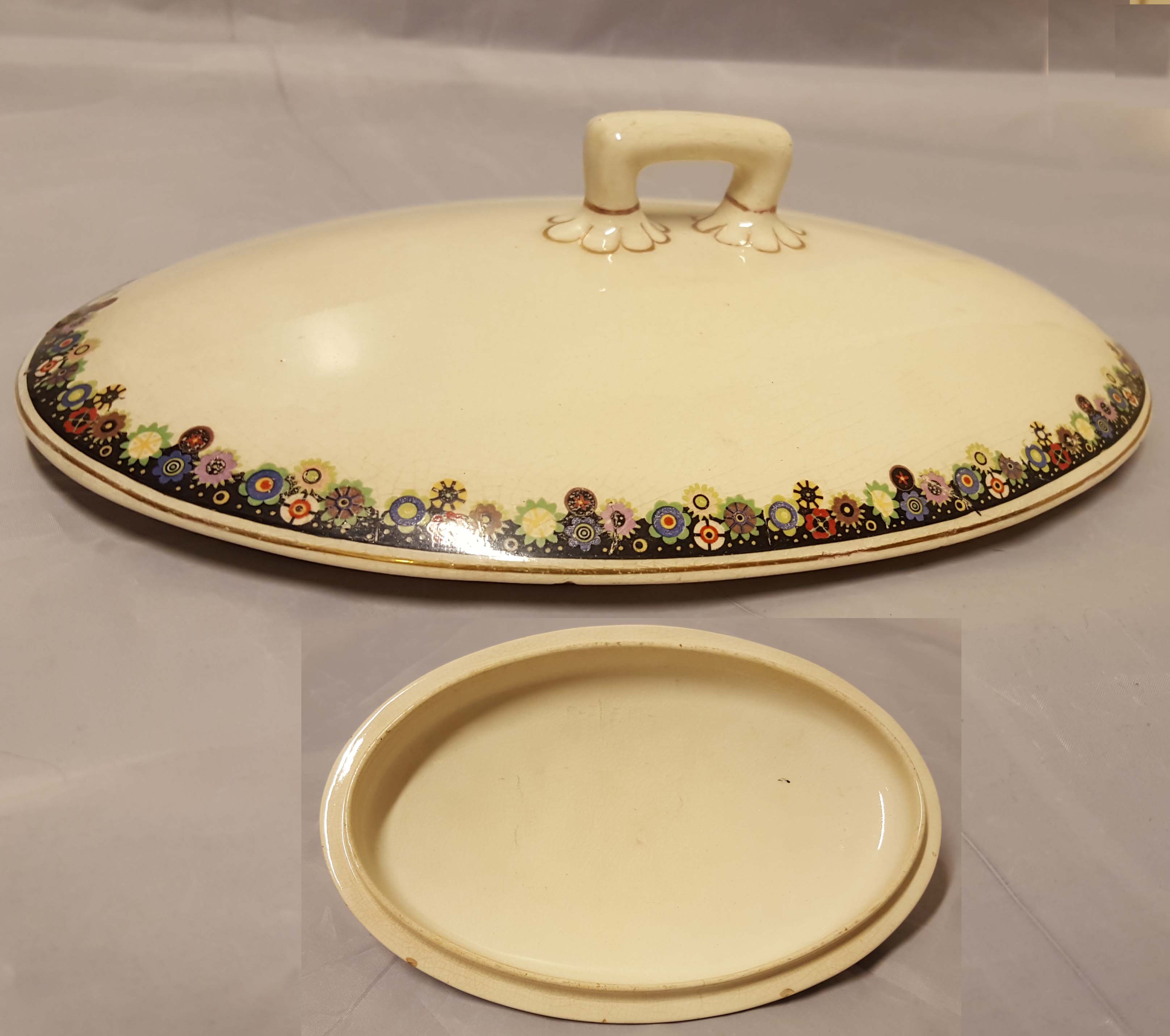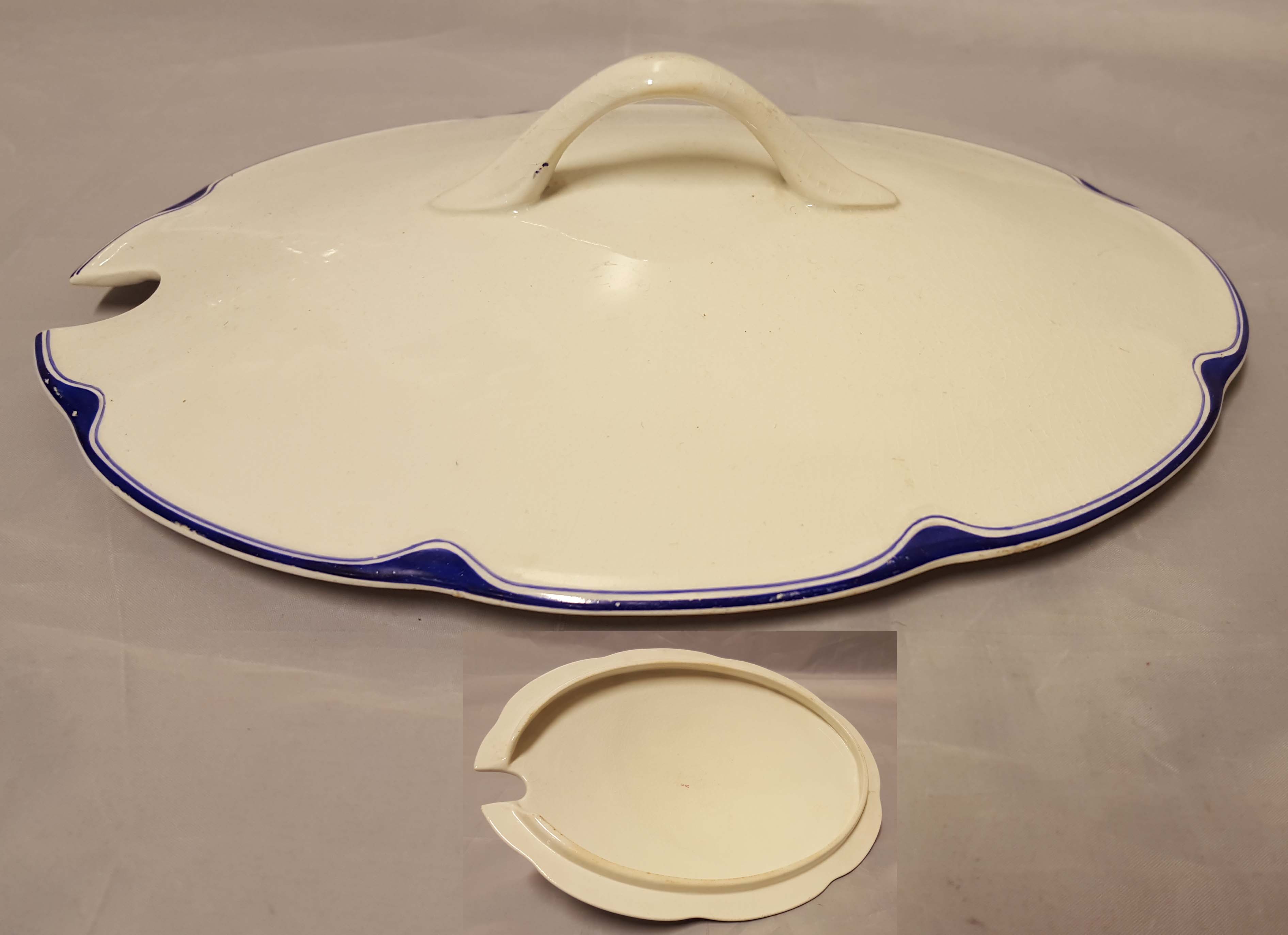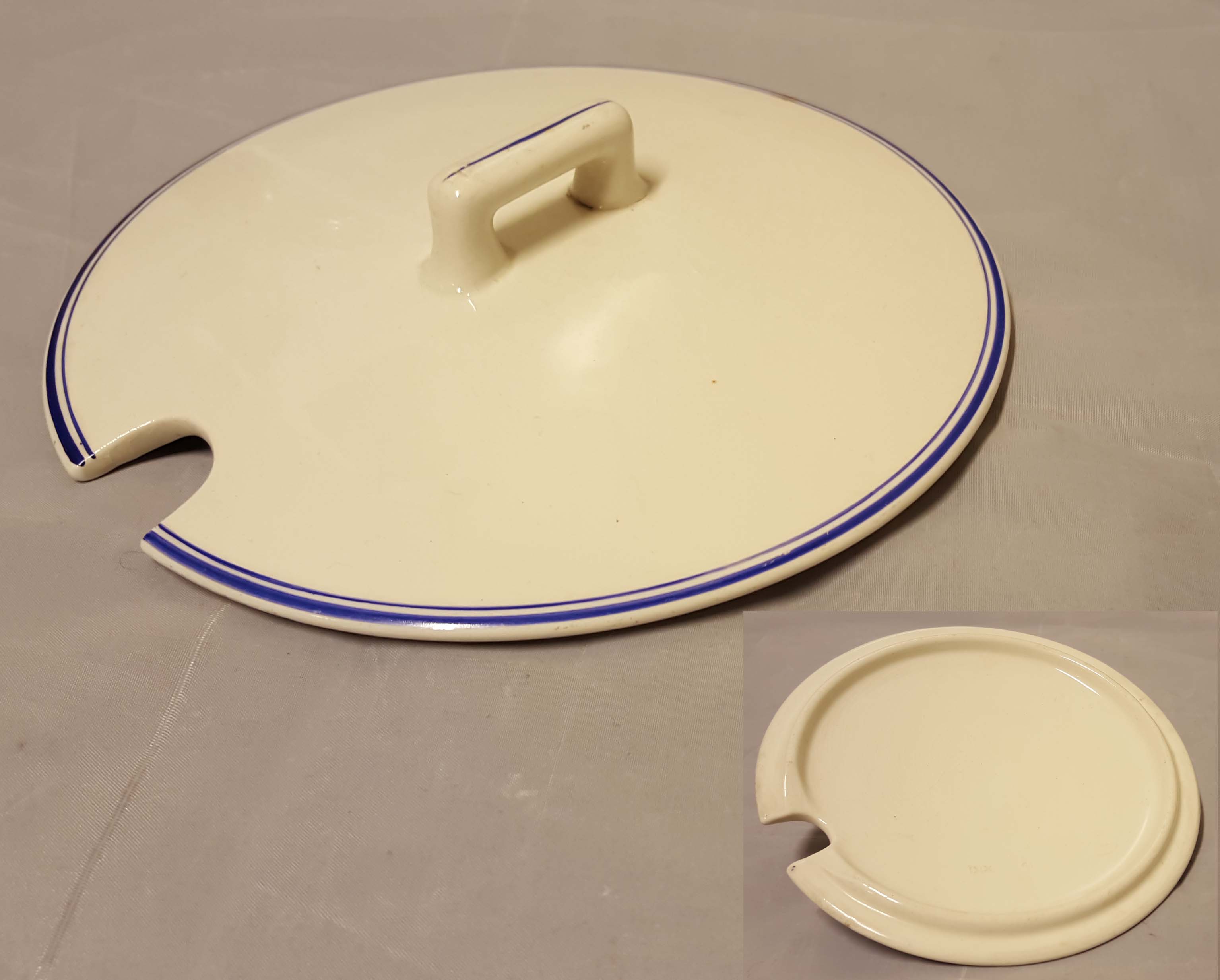 Halkaisija 13 – 23,5 cm - ehjät, mutta kulumaa ja ruskeaa pinttymää