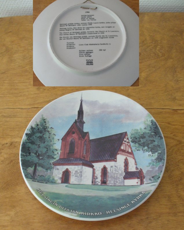Helsingin pitäjän kirkko - ehjä, halkaisija 20 cm - 1986, kolmas painos 200 kpl - Vantaan lautanen